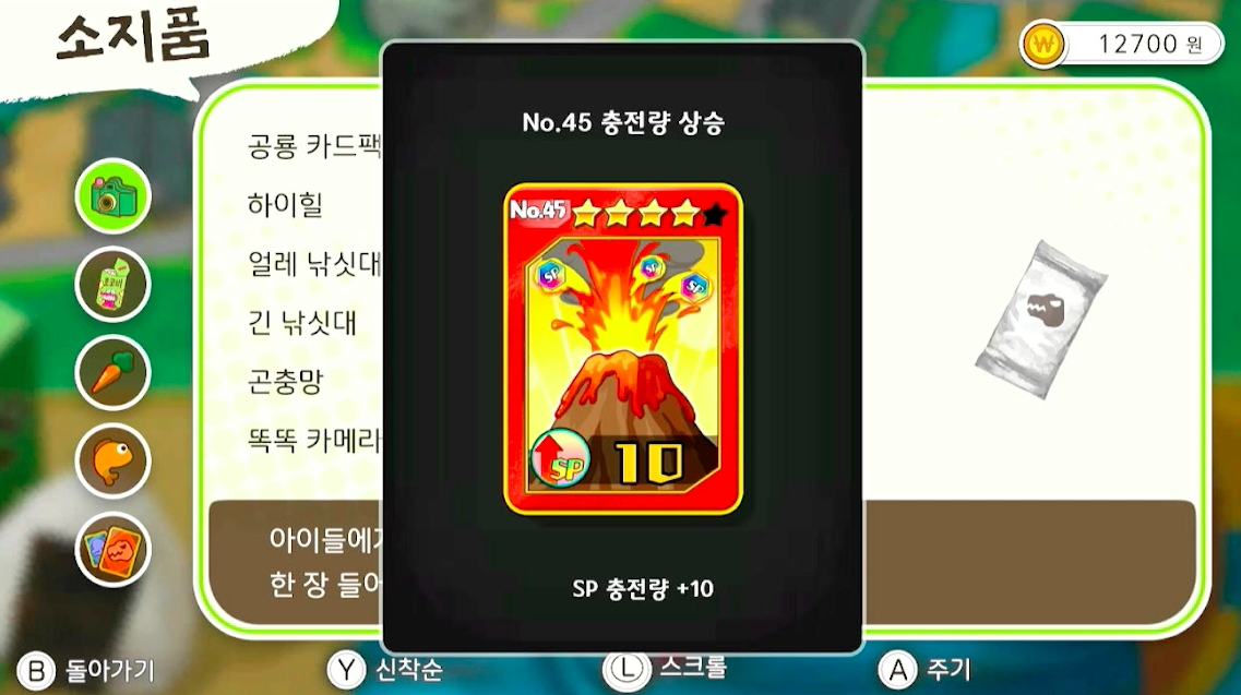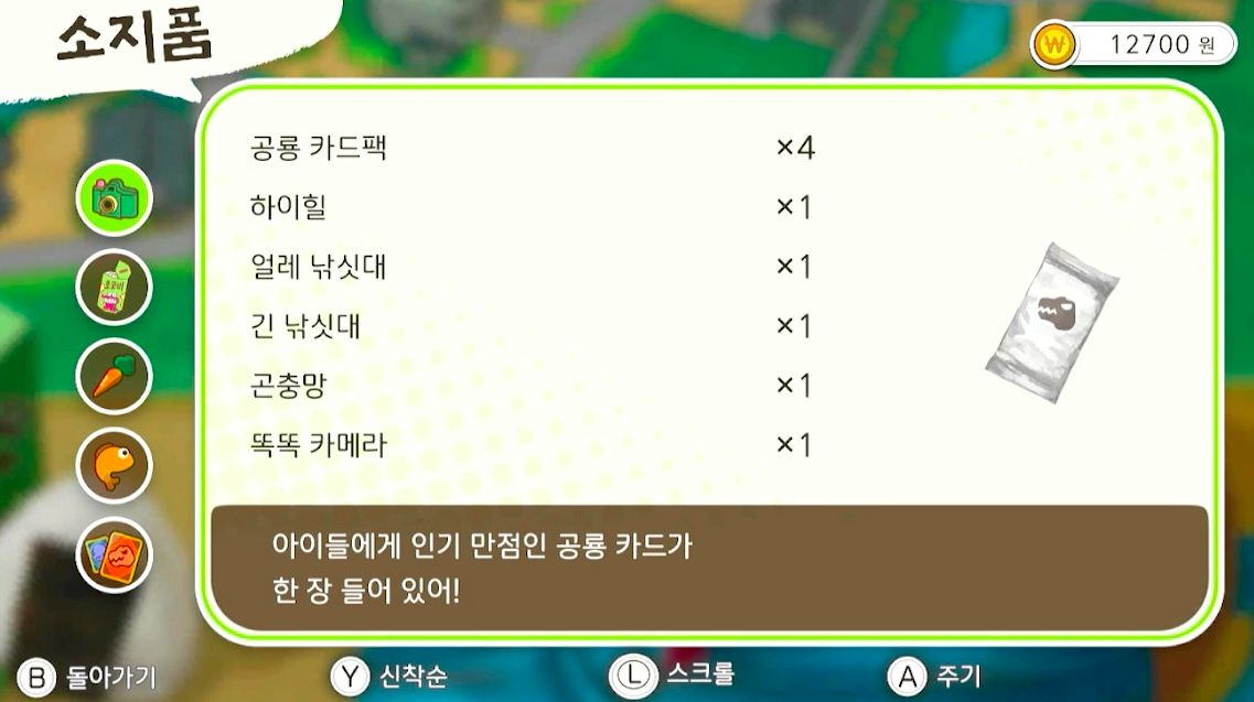 공룡카드팩에서 A를 눌러서 확인해줍니다